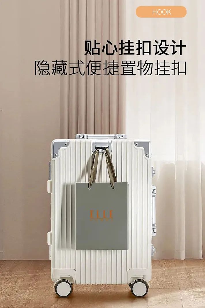 2.箱子设有隐藏式安全持扣,我们自己背的包包呀,或者有什么需要悬挂的东西,就可以随时挂在上面。