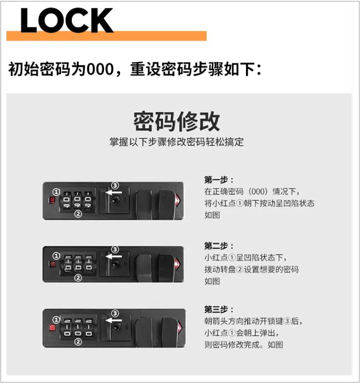 1.双重海关密码锁【如果平时你出门带的贵重物品更多,这种双重的安全保障也会让我们更安心,可以防撬】