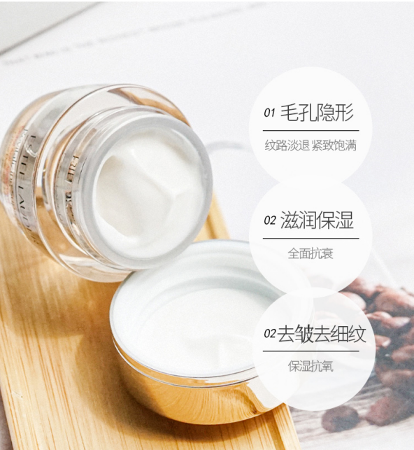 隐匿粗大的毛孔、淡褪细纹、焕白肌肤、弹嫩彭润、紧致塑颜,一瓶多效,抚褪多种面部难题而且不同于其他品牌的面霜,添加了各种乳化剂、柔润剂!所以它非常容易吸收一年四季皆可用,属于高回购率系列,让你肌肤回复弹性紧致光滑的年纪状态