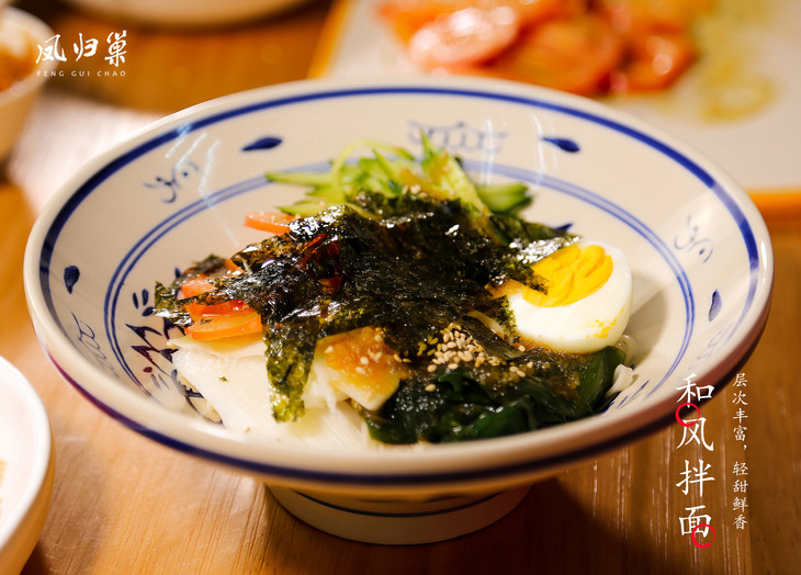 食材:凤归巢有机原味挂面、鸡蛋、海带芽、苹果、山药、西红柿、黄瓜、海苔、有机生姜、禾然有机糙米醋、蜂蜜、生抽、柠檬汁、熟芝麻、香油或橄榄油
