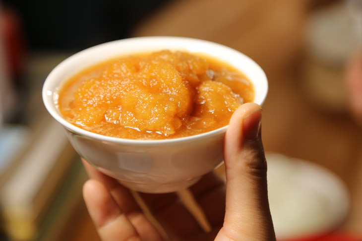 第二步,碗中放入两勺醋,两勺蜂蜜搅拌均匀,再入1-2勺生抽调匀,依次加入1勺苹果泥,半勺姜沫,2-3滴柠檬汁(此为一碗料汁量)