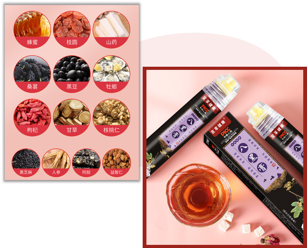 八黑膏特添加人参、阿胶、枸杞