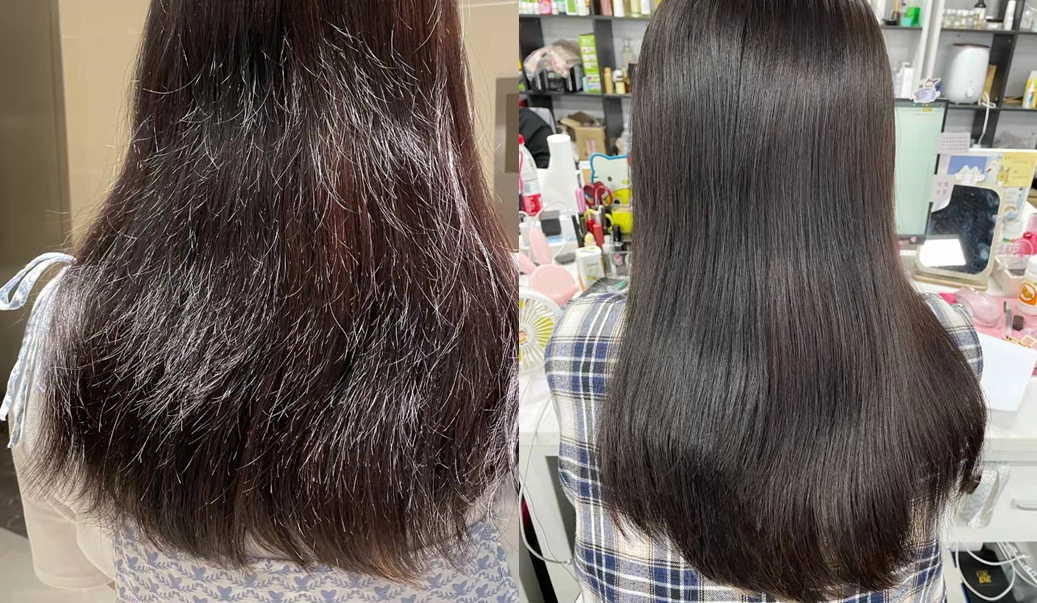 原本因气血不足而毛糙分叉的头发