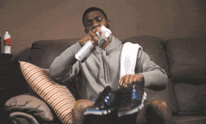 直接拿吹风机往鞋子里吹,热气呼呼往外冒。