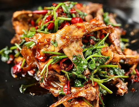鸡架虽然肉不多,但是经过辣炒,咸、鲜、甜、辣等滋味均匀包裹在鸡架外面,吃着肉再吸吮着骨头,那滋味别提多美啦!