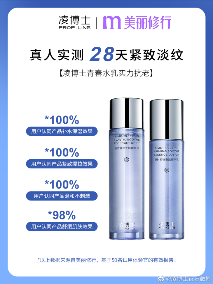 用真实数据说话,为年轻肌肤买单凌博士联合@美丽修行app ,邀请50名受试者真人实测,共同见证#凌博士青春水乳# 的抗老实力❗保湿、紧致、抗皱多维度检测,让干皮抗老有迹可循,28天共同见证,无惧岁月的痕迹❗