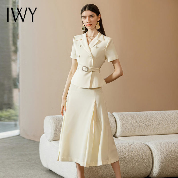 穿上身比一般的裙更具有腔调!西装+百褶裙设计年轻不过时以腰带划分出“黄金三七分”比例