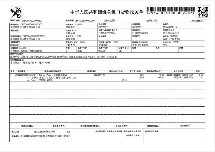 (还是那个在外辛苦的采购发来的报关单)