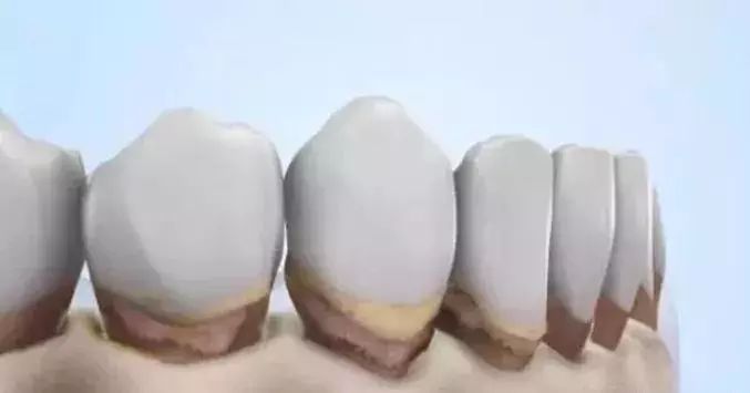 恶势力不断崛起,一定数量大小的牙结石充斥满你的牙龈缝隙间,细菌不断侵蚀,你的牙龈节节败退,保守阵地,于是牙槽骨吸收,牙龈萎缩。