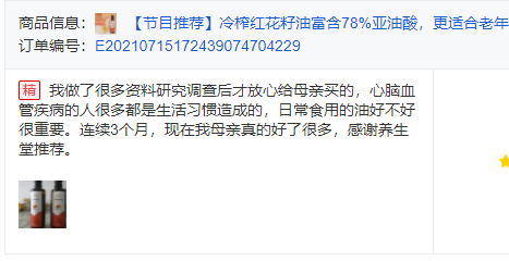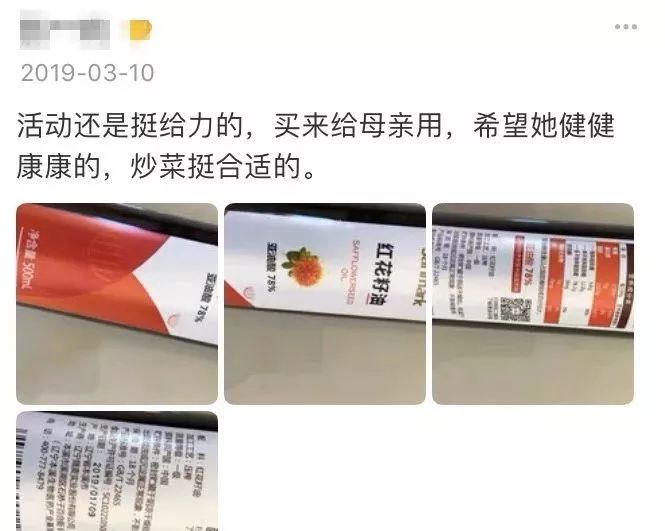 还有粉丝留言说:红花籽油清澈透亮,第二次买了8瓶,打算送朋友