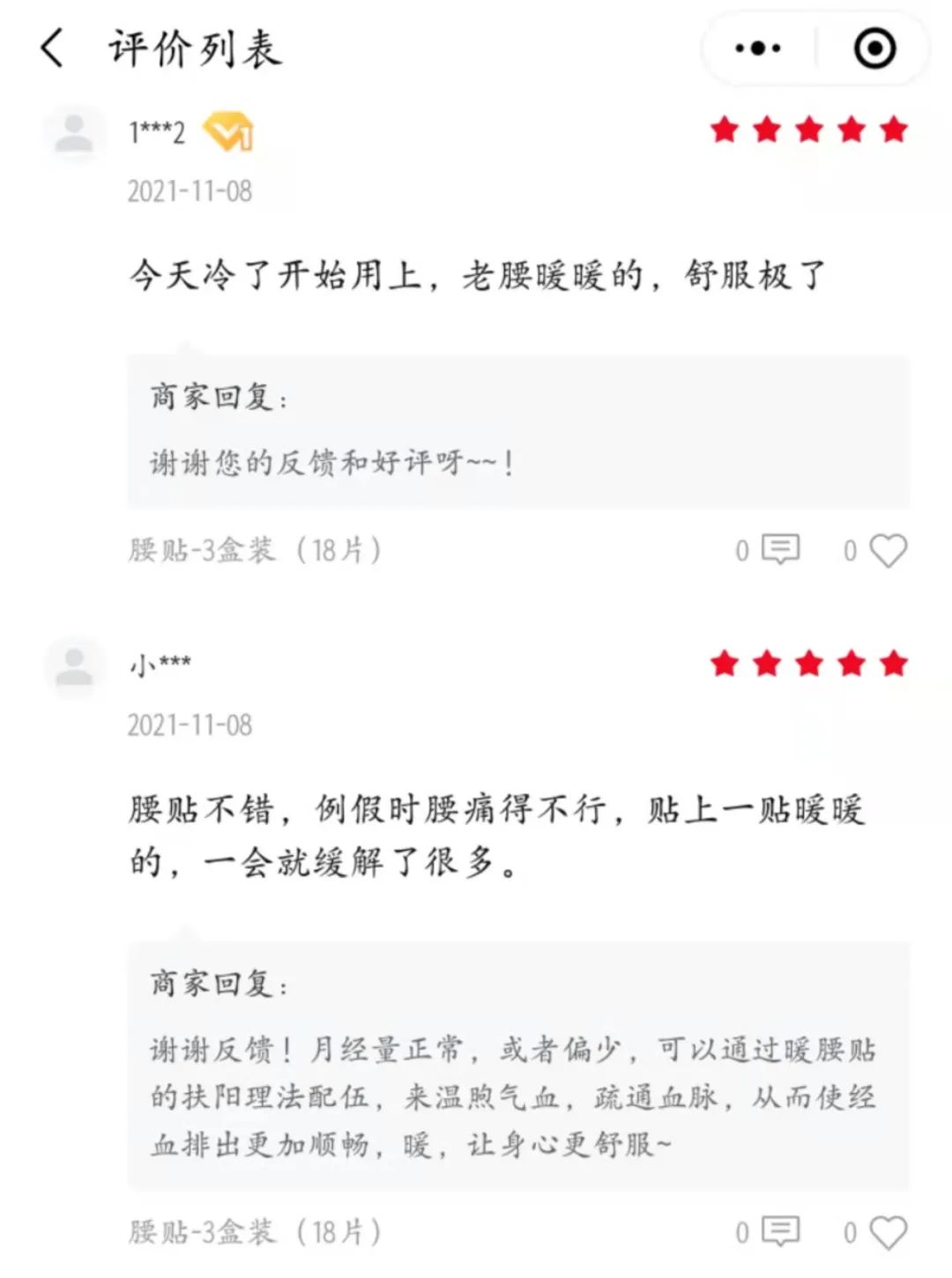 其实今年三月份上线暖颈贴后,就一直收到用户反馈说,暖颈贴的使用效果很好。
