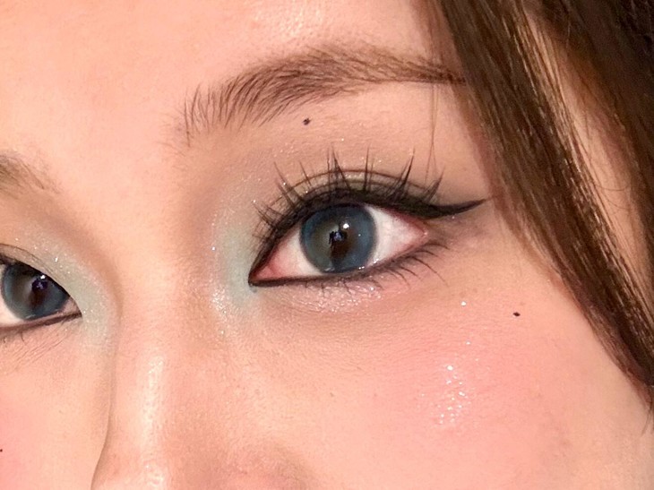 1️⃣内眼角提亮,不同以往的哑光白提亮,换之用波光粼粼的亮片色打底➕高饱和彩色眼影叠加,不仅让妆容更有亮点,还可以更好的衬托出高耸的鼻梁和立体的眼窝,消除疲惫感!!