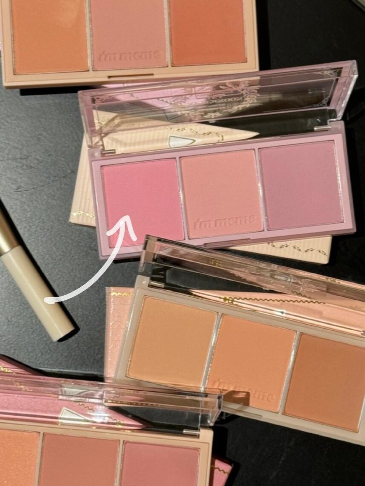 3️⃣高饱和腮红面中加强!!一定要用高饱和腮红(颜色明艳一些)➕腮红迷你刷精准的打在苹果肌最高点,范围要足够小,颜色要足够艳!一整个焕活青春!谁试谁知道!