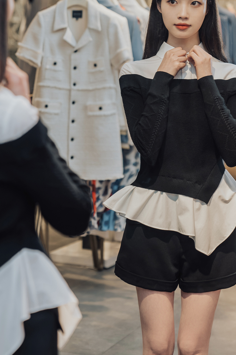 最经典的黑白搭配,开叉衬衣下摆充满设计感~与黑色夏装搭配,简约大方!