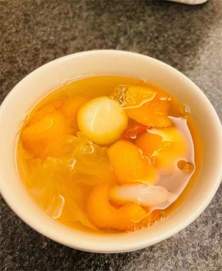 【做法】泡发银耳,剪去根部,放入水中熬煮至粘滑熟透,取出待用。锅中加水,放入银耳冰糖,小火烧沸后再加入枇杷肉丁,再熬10分钟关火即可。