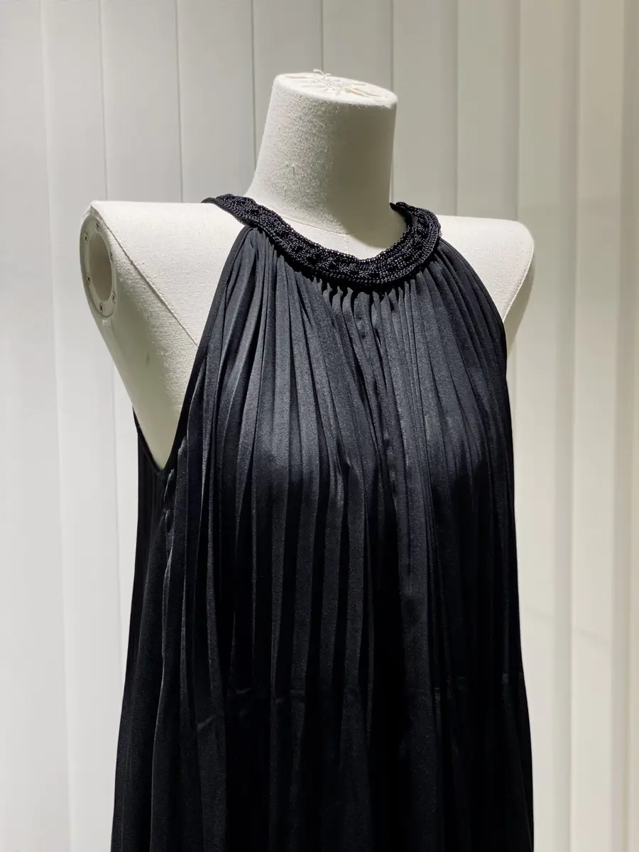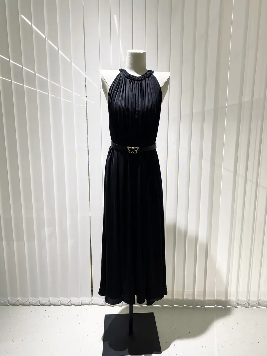 本期轻奢系列重磅推荐的一件小裙子,礼服感十足,全身采用压褶工艺,从小到大的褶皱变化,使得裙摆层次波浪感十足,上身就仿佛古希腊的女神一般,单穿有气场,装点腰带也有别致韵味;