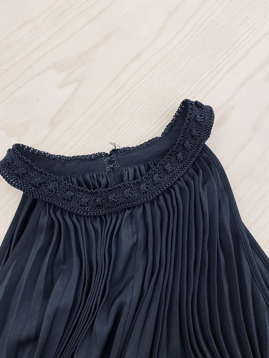 领口采用别致的挂脖设计,整片重工刺绣针织装饰,精致感满满,同时后片内置u型,穿脱更方便,隐形又高级;