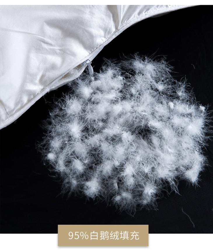 有足足95%的鹅绒填充,轻柔又温暖,松松软软的手感,想立马躺上去。
