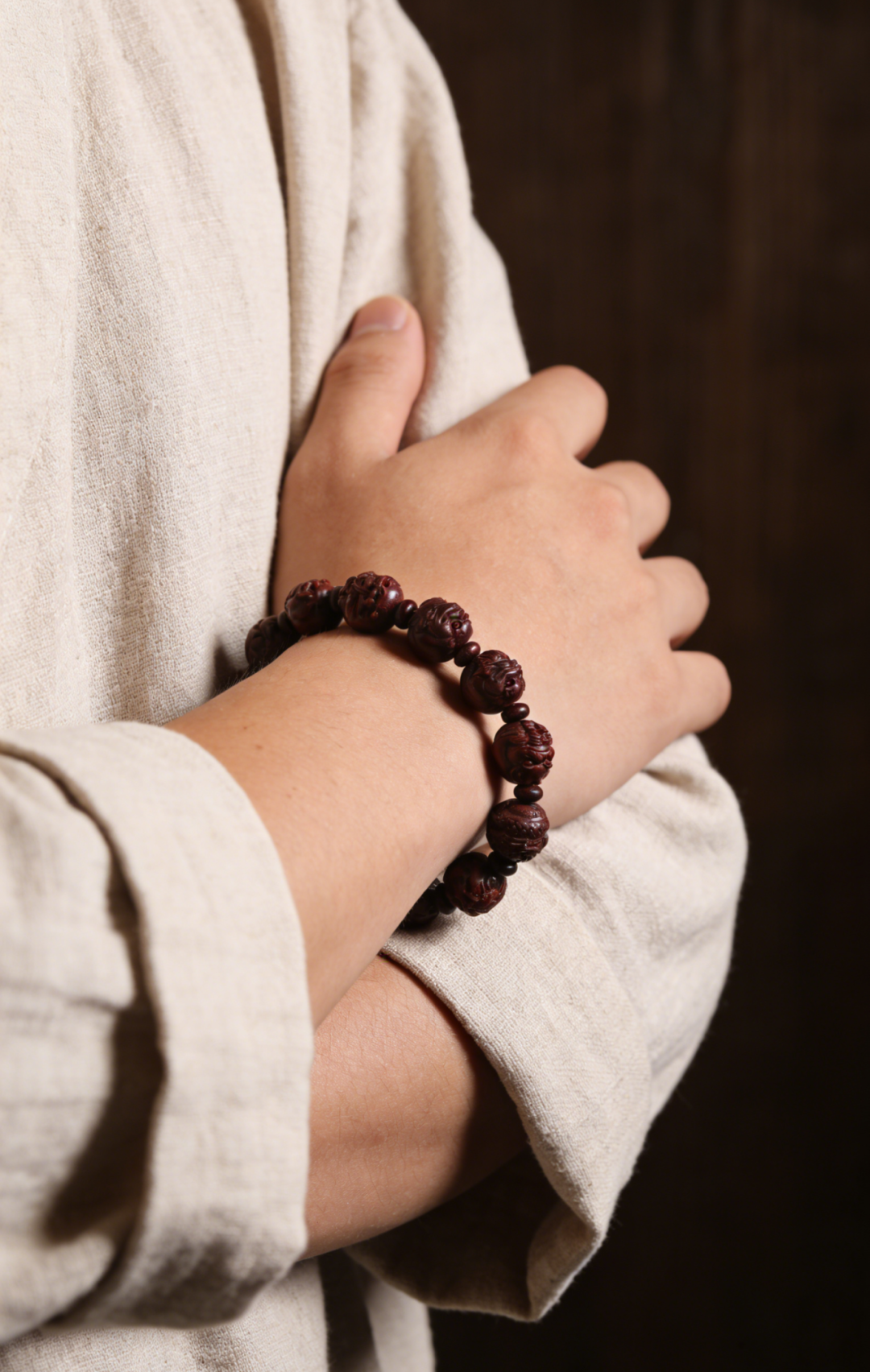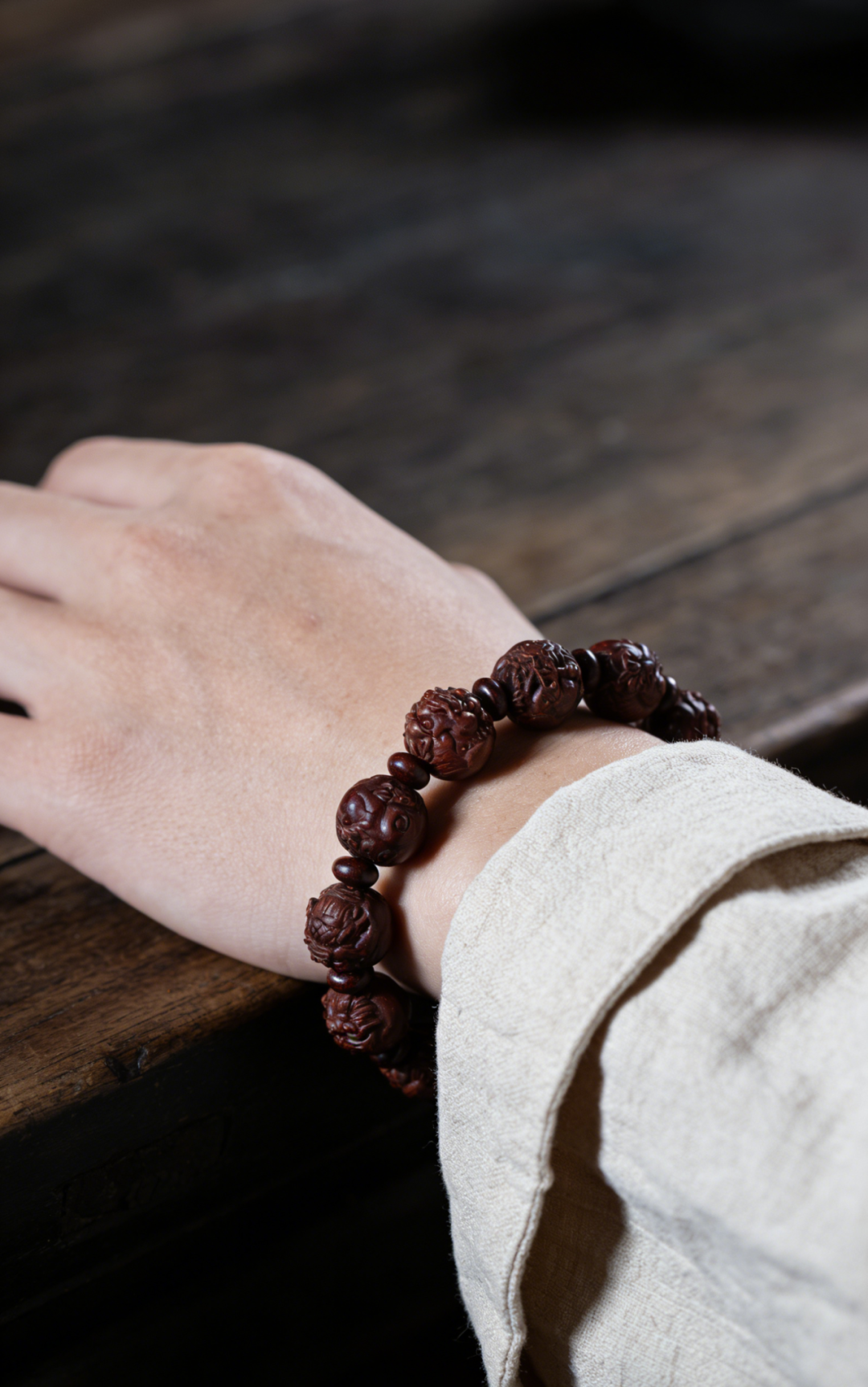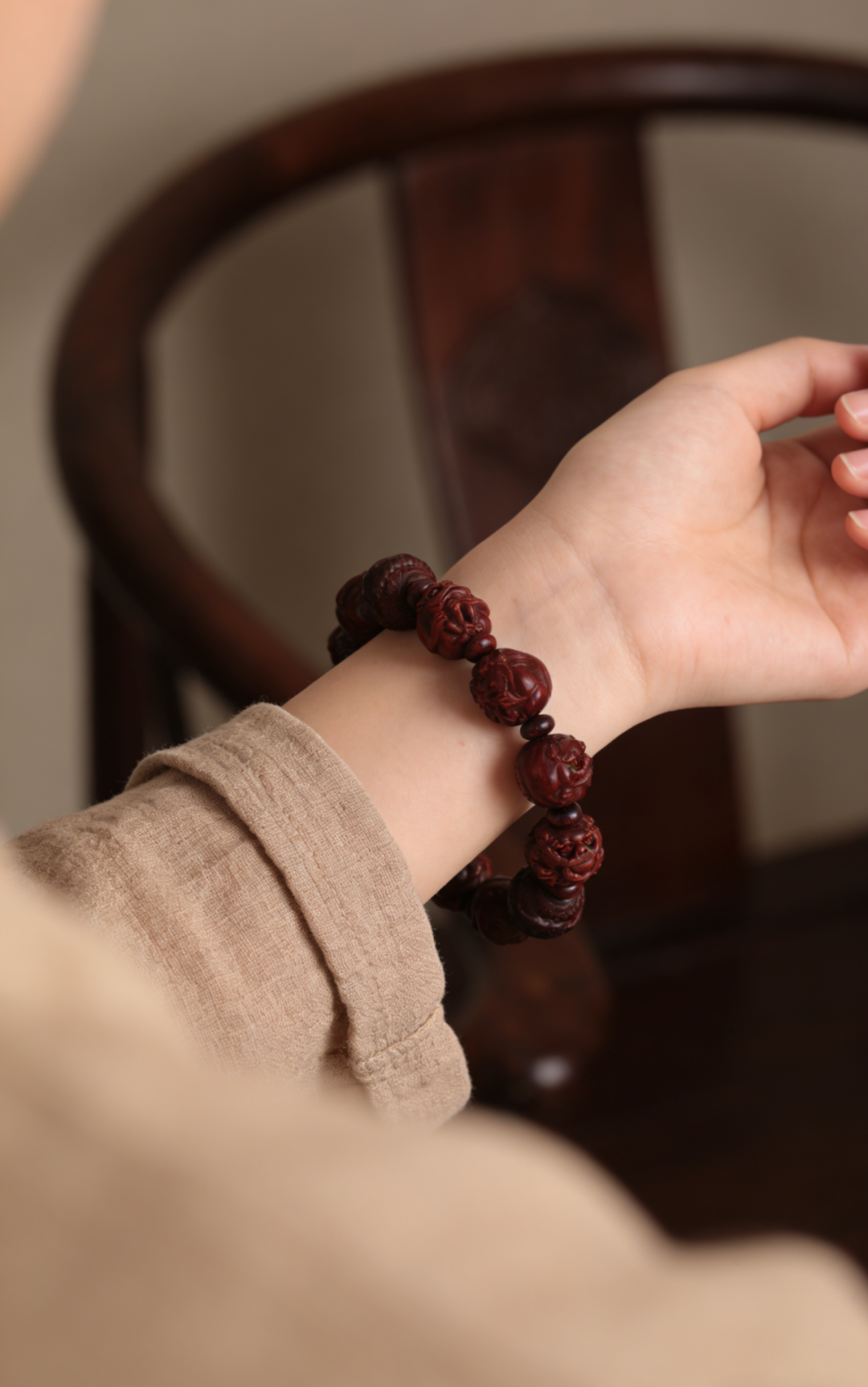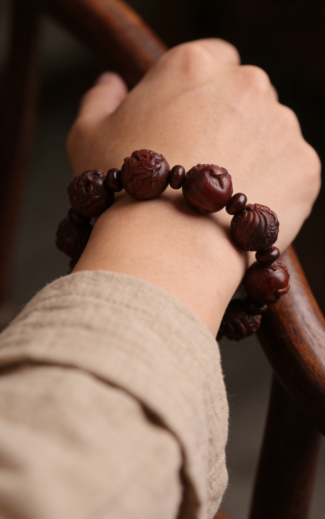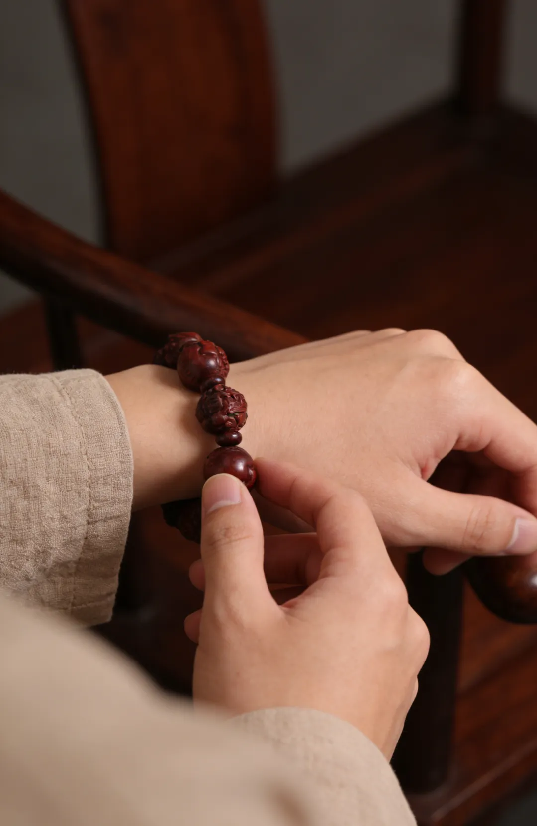 紫檀戴的是底气,绿檀戴的是心安,九子护的是一生周全。