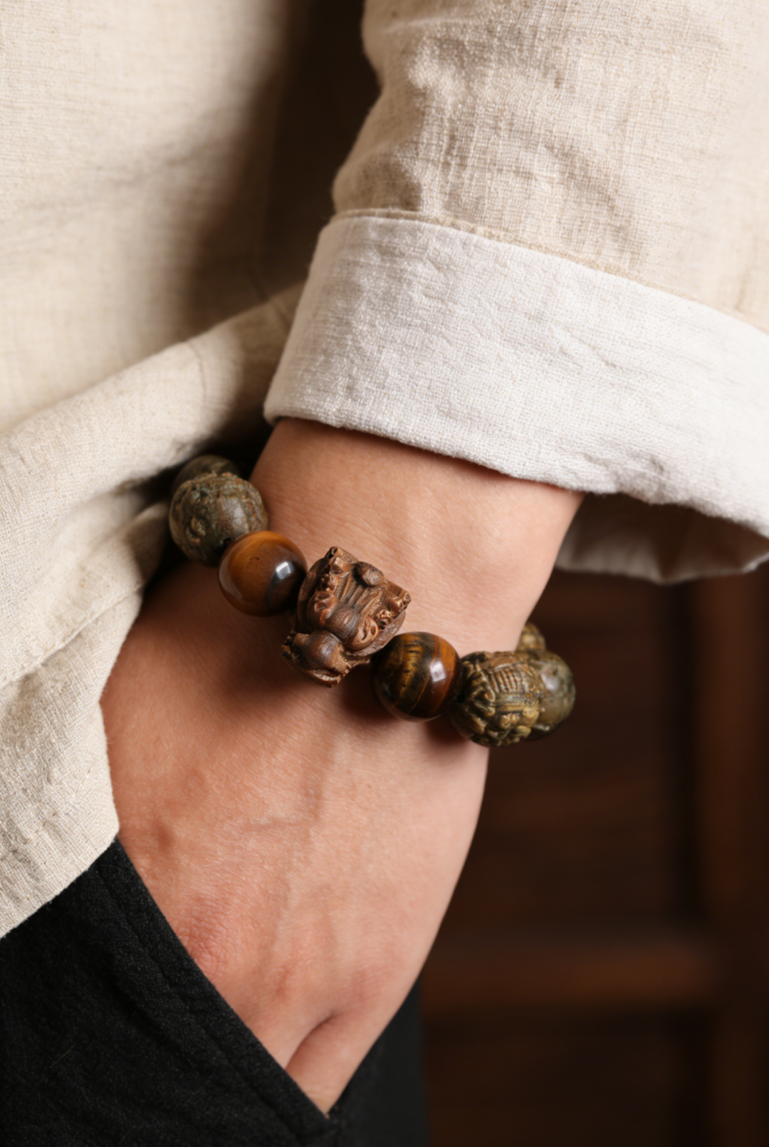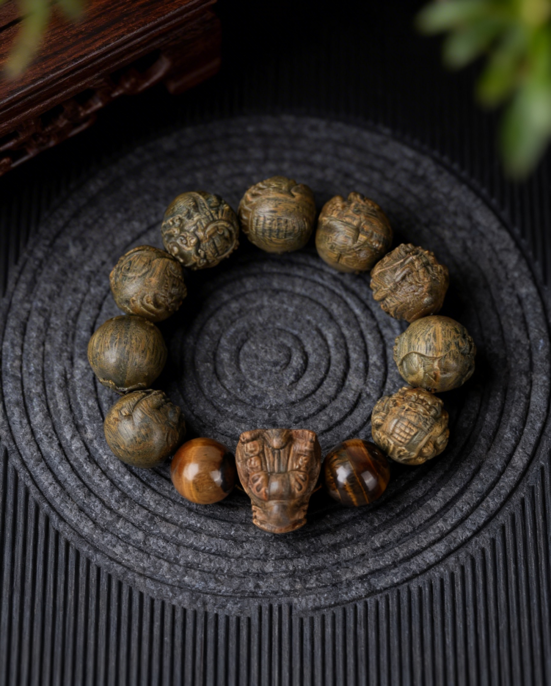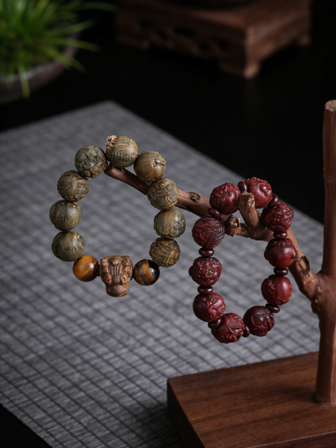 两款手串雕刻的都是龙生九子,但因为材质不同,传递的气质和能量完全不同。