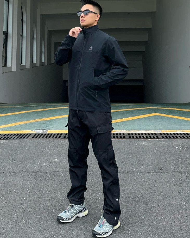两侧配有拉链插袋。户外机能材质面料,四面弹力,上身轻便无拘束。