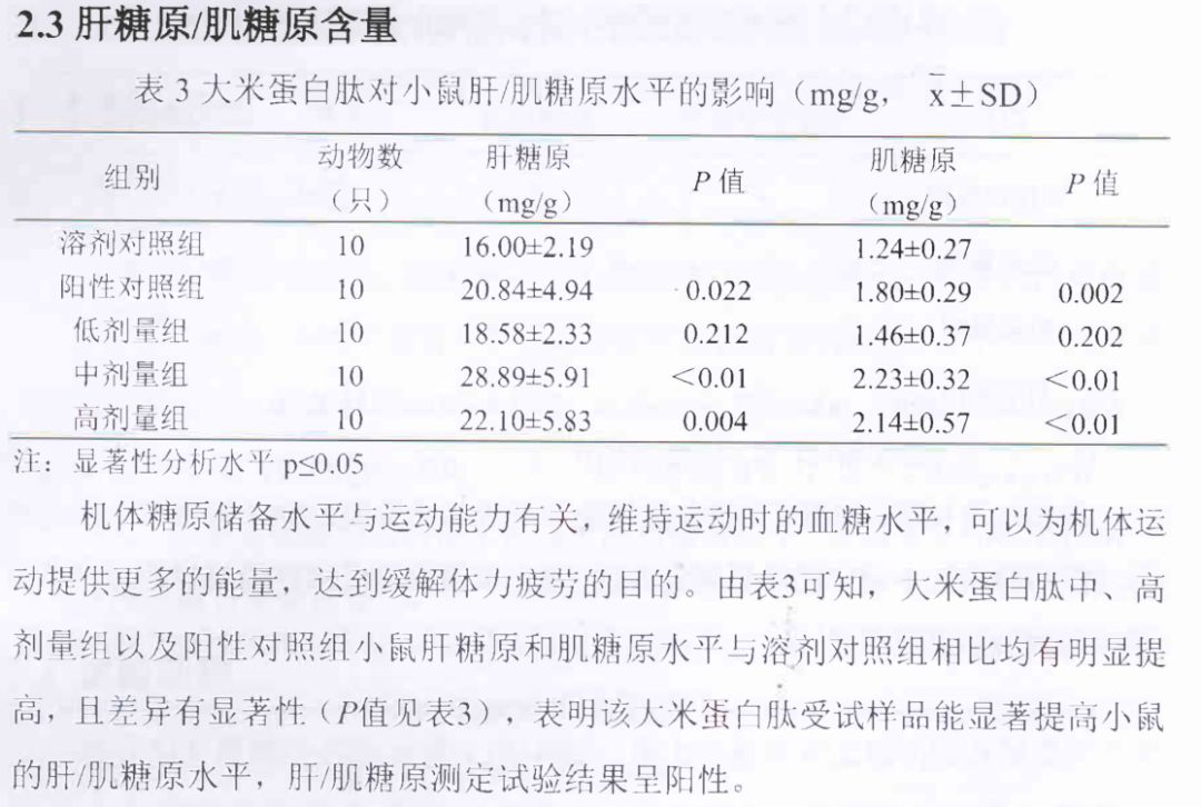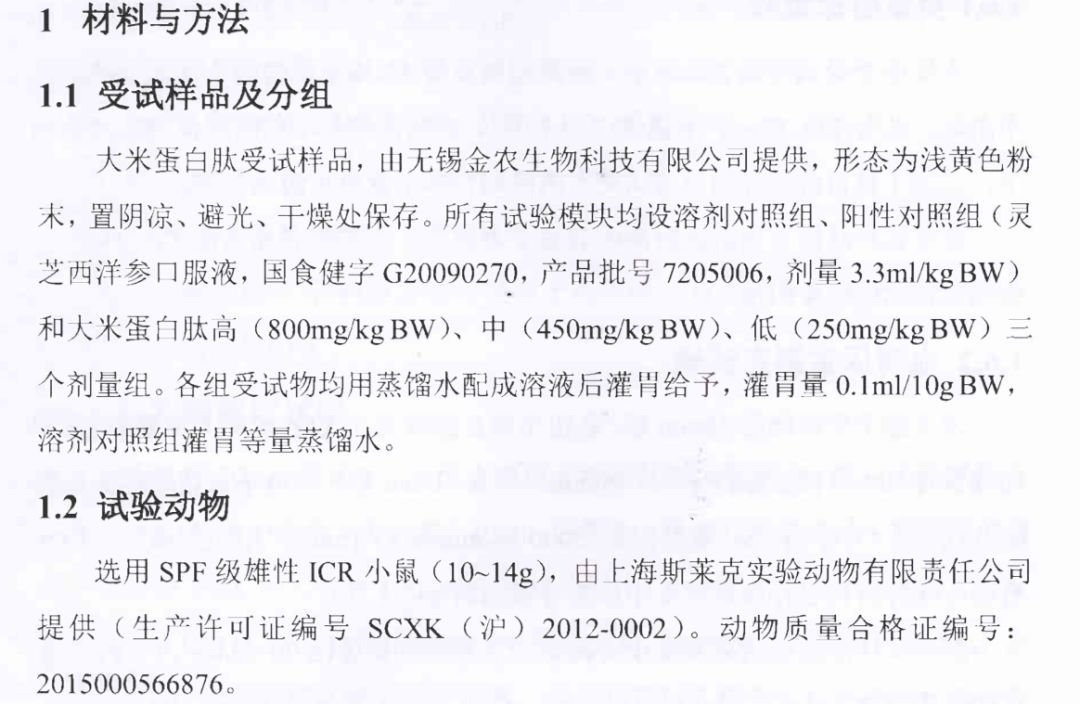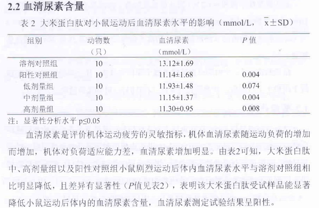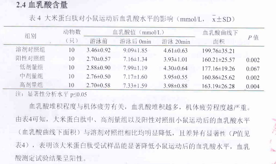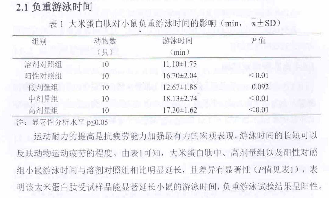 大米蛋白肽,抗疲劳试验报告