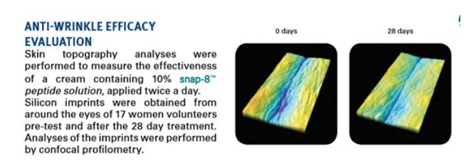 (0.05% 的乙酰基八肽-3),当属目前世界上最贵的原料之一(约15w/kg),而这款胜肽精华中【snap-8】的添加量高达10%!(10%是什么概念?!就是其它品牌的产品如果想要在30mL的精华里添加这个浓度的【snap-8】,光这颗原料就要花掉450块钱!)