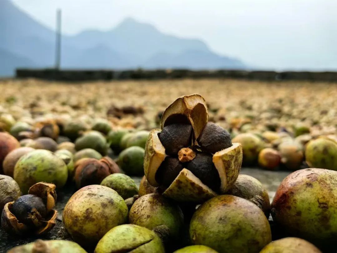 秋天油茶成熟的时候,乡里人也会把油茶摘下晾晒
