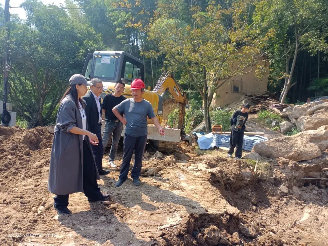 设计师钱闽老师10月13号到现场与施工队交底,进行图纸答疑。山岭多风雨,修缮留存下来的老房子,作为现场临时工棚,以安放旧木料做的门窗。
