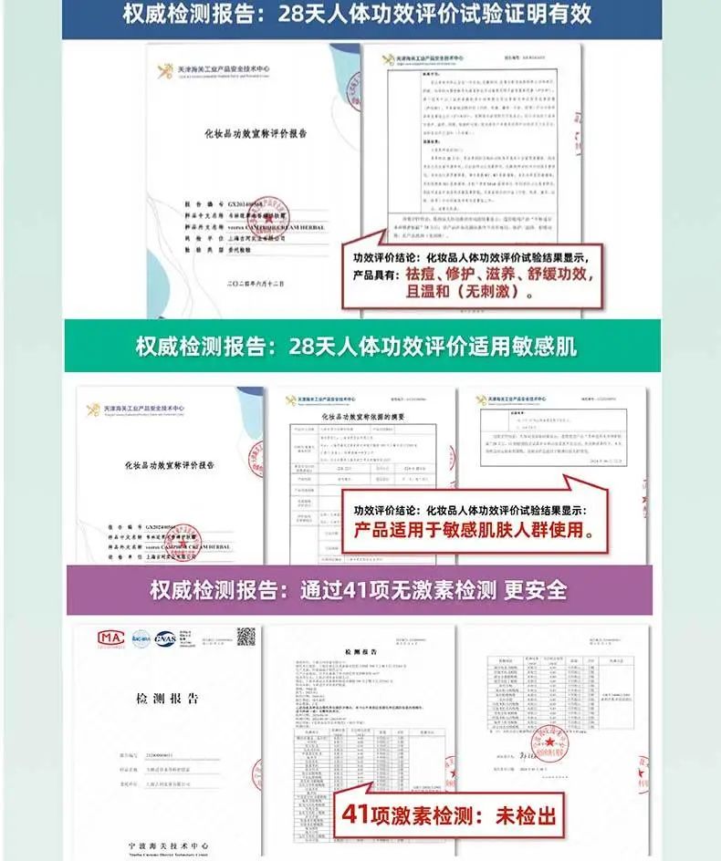 经过权威机构多项检测,无激素,无刺激性,皮肤干燥敏感人群用着也毫无负担。