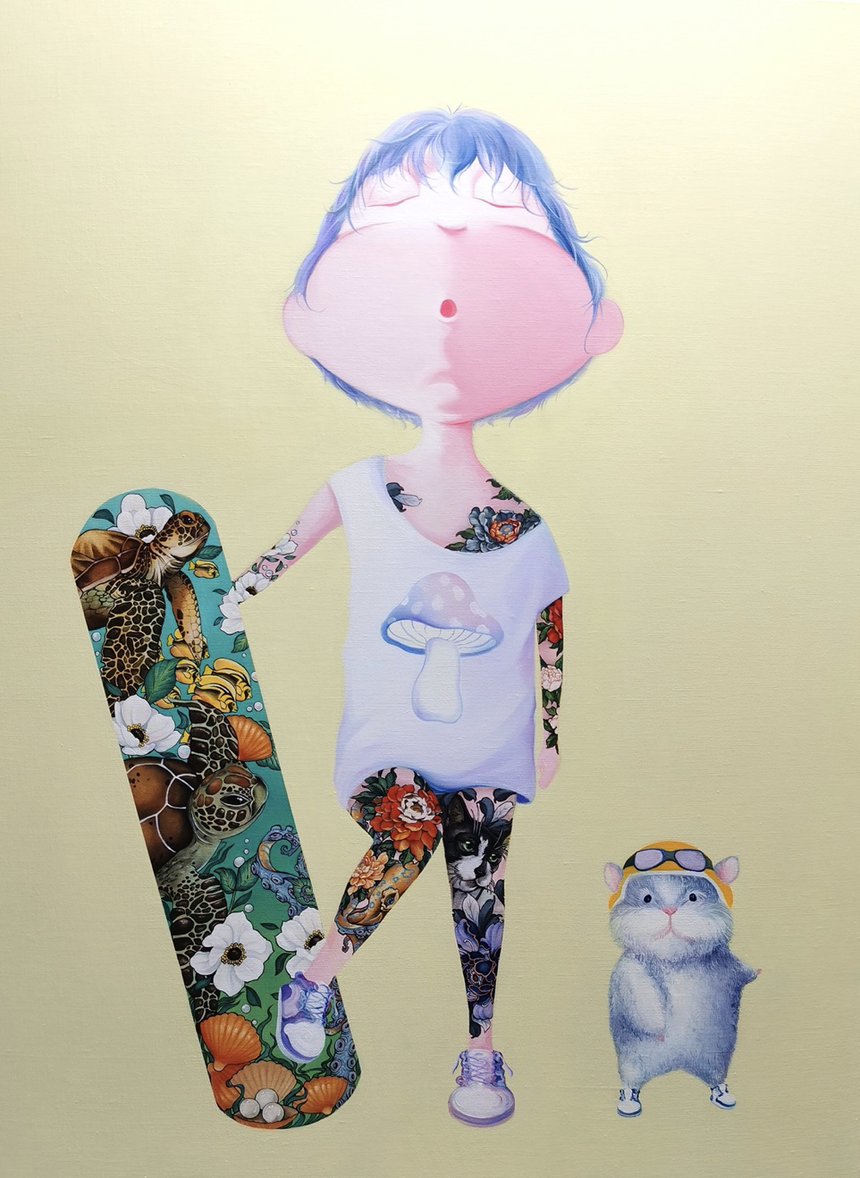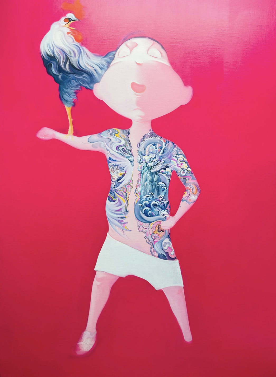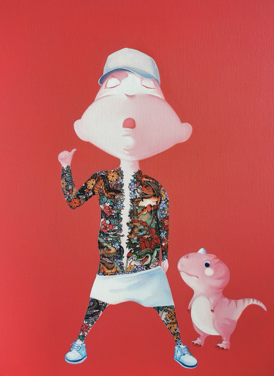 孩童时代是最为天真无邪和无忧无虑的, 画布上的孩童形象也是一种怀旧与寄托,在当下这样一个物质及信息过度膨胀的时代,回归孩童,回归本真,也意味着释放了更多的想象空间,还有更多憧憬和可能性。