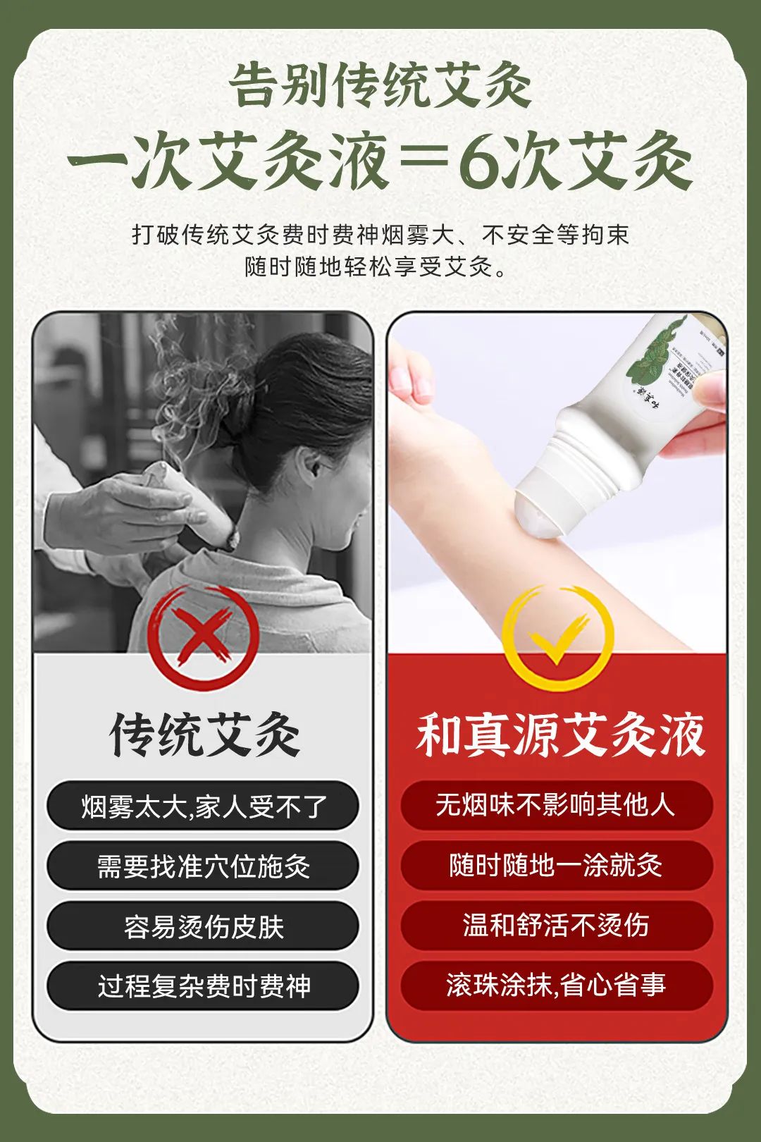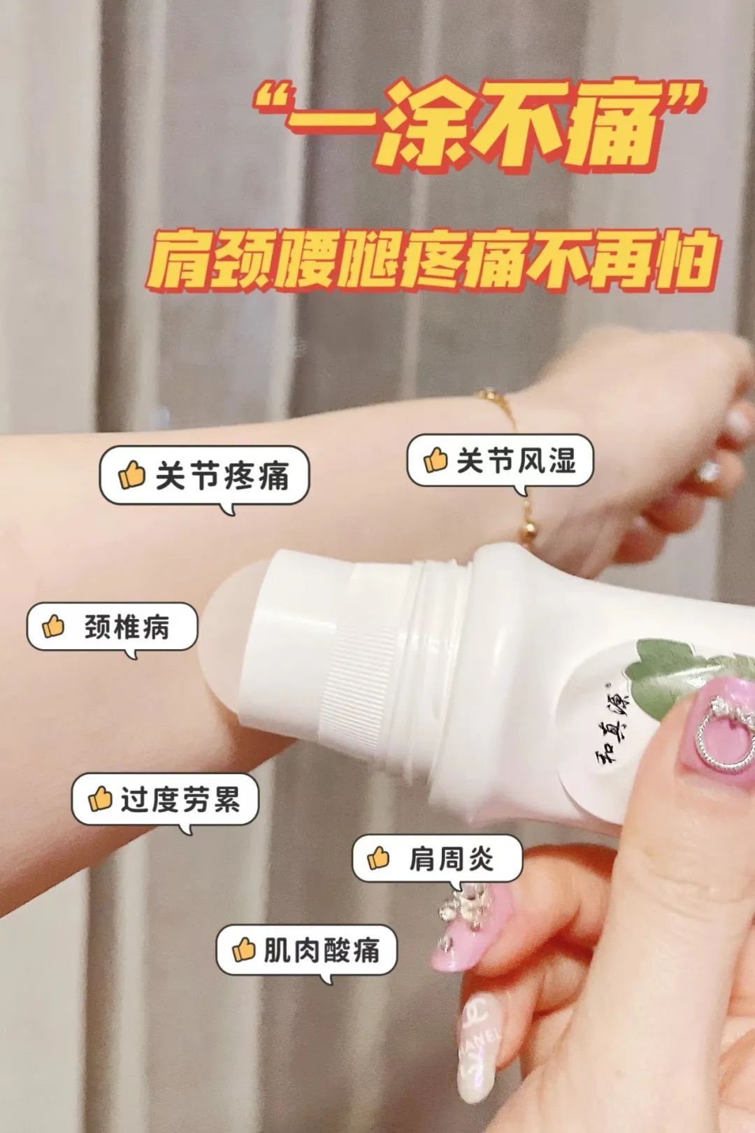 不用打针,不吃氨糖,无需激光电疗手速开刀,一涂一抹即可,涂上不影响日常工作和生活,自己随时温灸,不用麻烦人