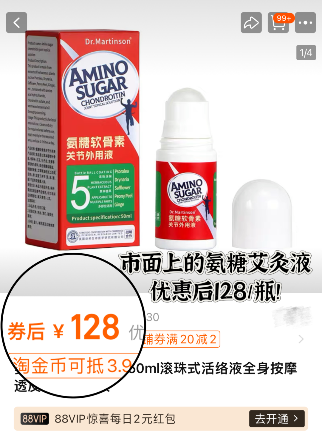 某宝氨糖艾灸液128/瓶