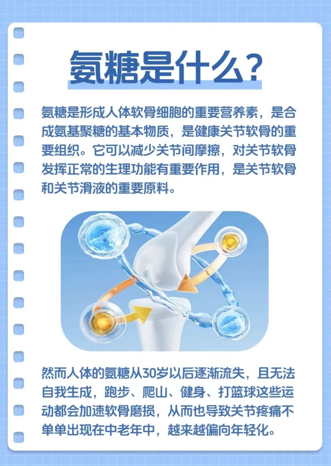 关于氨糖,给大家简单科普下: 它是存在人体中和关节紧密相连的一种物质