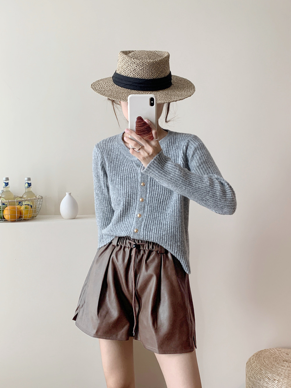 开叉皮短裤设计,增添一丝俏皮与时尚感,行走间流露出灵动气息。