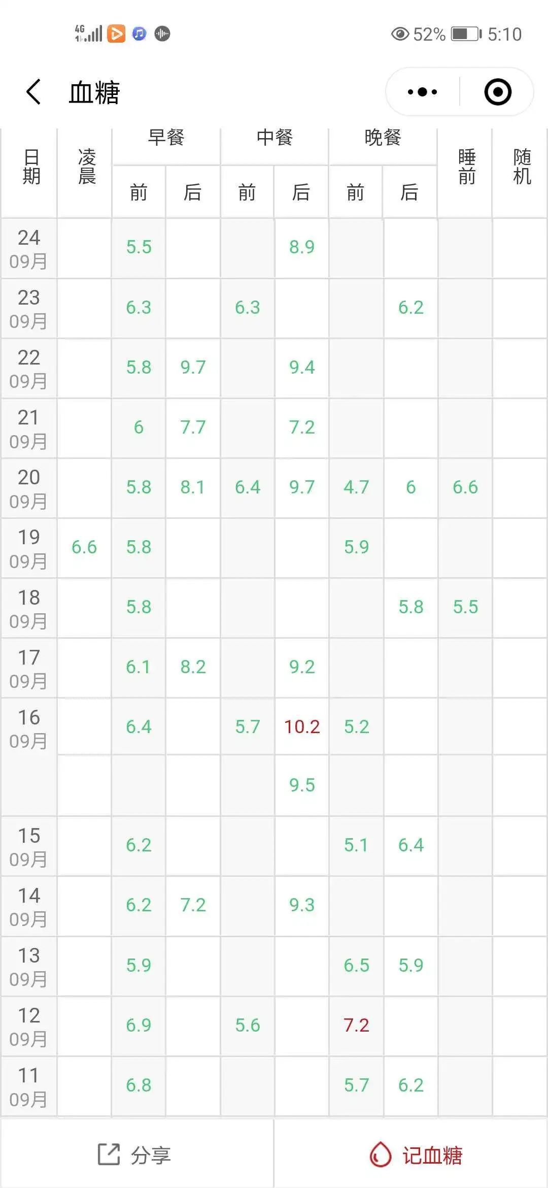 血糖逐步变得非常稳定,空腹血糖稳定在5.8一6.1的正常水平,体重从72公斤下降到68.3公斤。