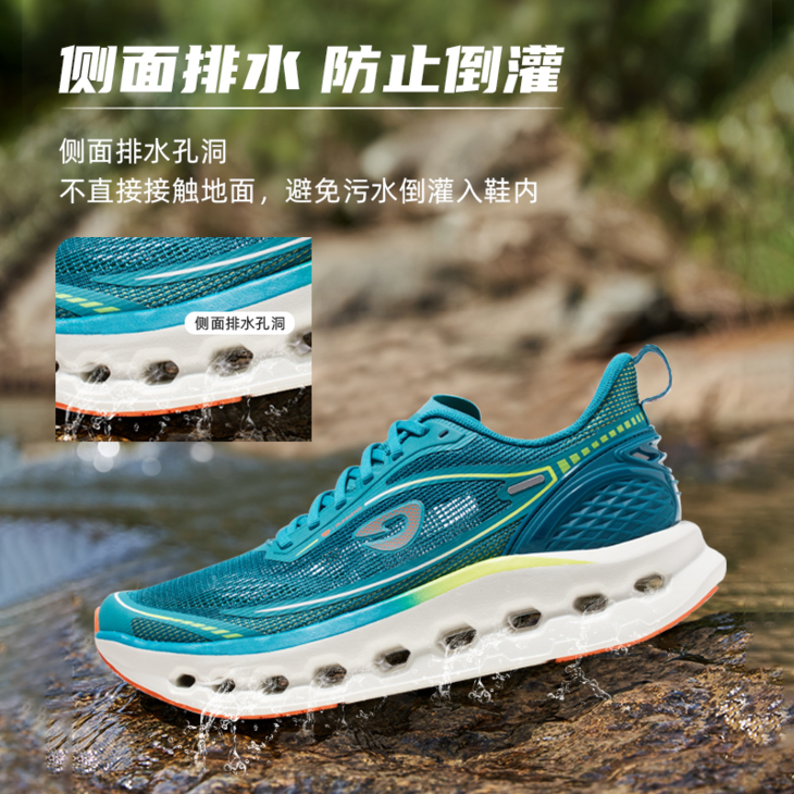 鞋子进水会变得沉重,甚至是举步维艰,但户外特工溯溪鞋W10不同,中底的侧排设计,实现 1秒极速排水。