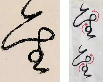 弧线可以辅双钩和单勾的多次重复和比较,双勾可以从中感受与体验细节,可以使线形变得立体起来,线边缘的锯齿状包括舒缓处和急促转弯处的内外侧所对应的用笔,由此也能判断对应的停、顿、挫的用笔动作。