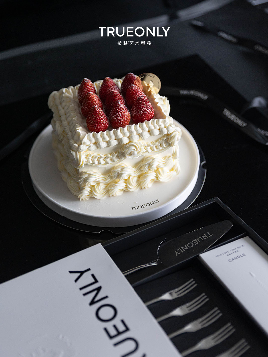 TRUEONLY寓意着创始人所追求的食必求真 (TRUE) 与独特不凡 (ONLY) 追寻手作甜品的艺术文化,探寻仪式感与幸福感的美学呈现,把生命的温暖制成生日蛋糕,与美好不期而遇