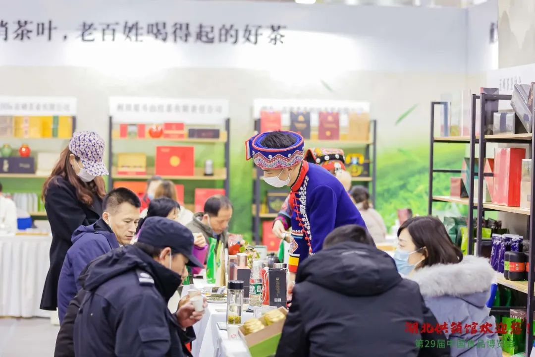 “宜红”红茶、“恩施玉露”绿茶、“川”字青砖茶、“火车头”和“牌坊”米砖茶等各色湖北茶产品悉数“登场”,不断吸引顾客驻足品鉴。