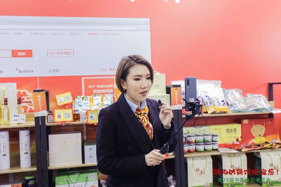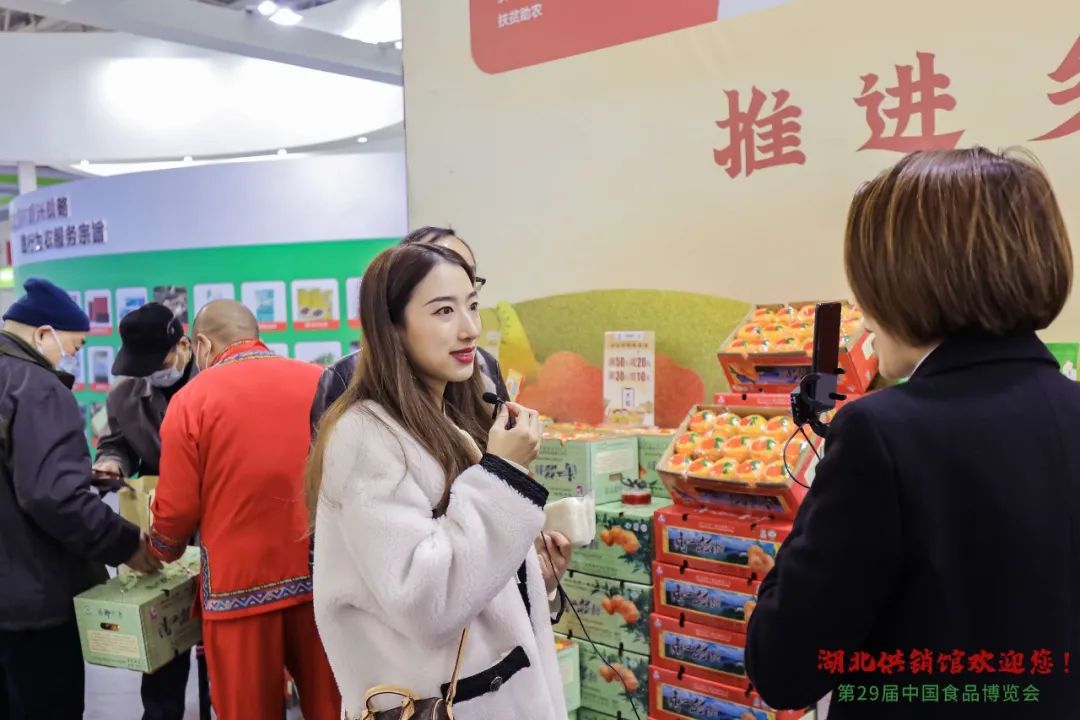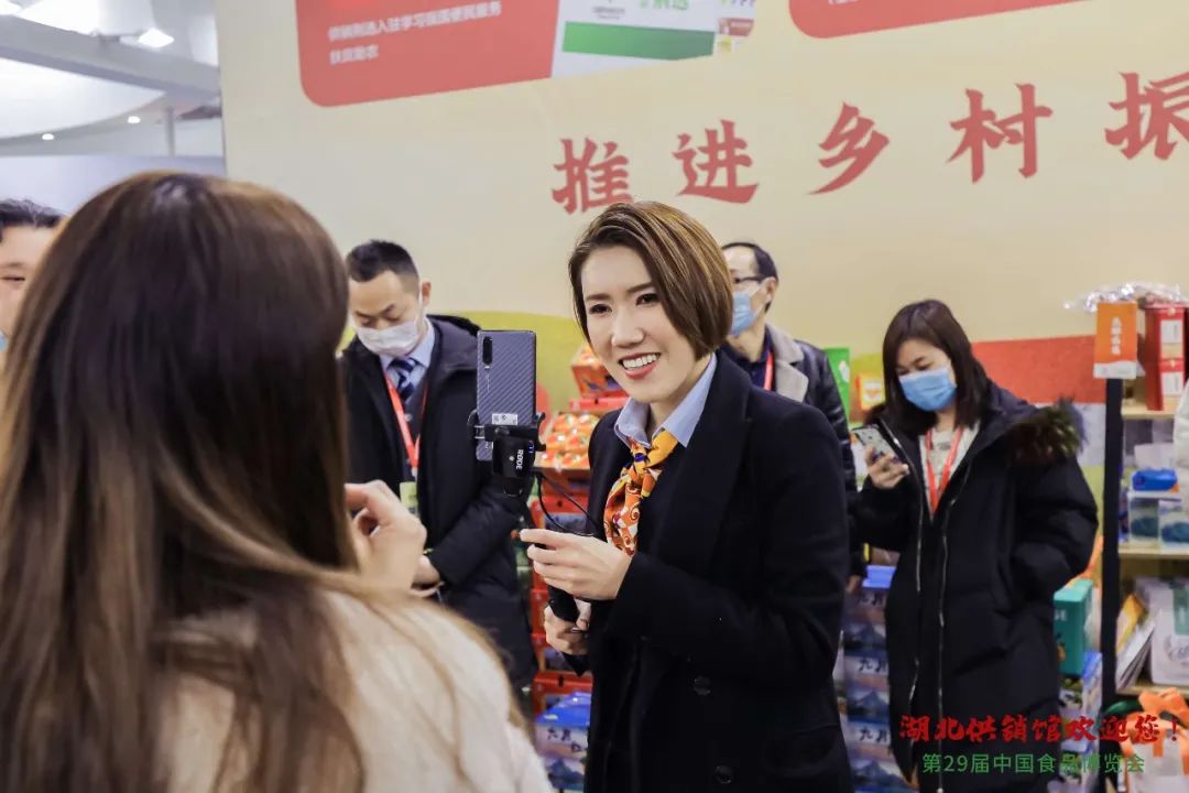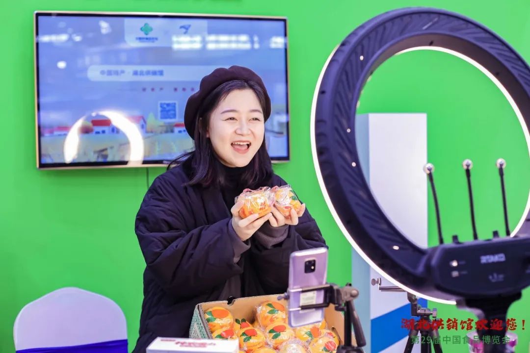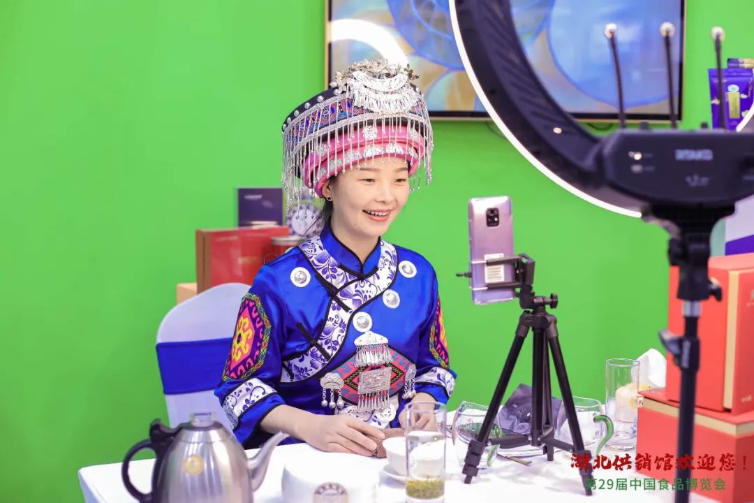 同时,为适应年轻化市场需求,湖北供销馆更是首次于展会现场开展直播带货。来自恩施、十堰穿着民族服饰的土家族主播,成为食博会一道别具特色的“网红”风景线,吸引了不少群众拍照留念。