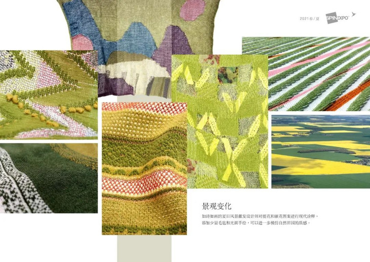 如诗如画的夏日风景激发设计师对提花和嵌花图案进行现代诠释。添加少量毛毡和光面手绘,可以进一步模仿自然田园的质感。