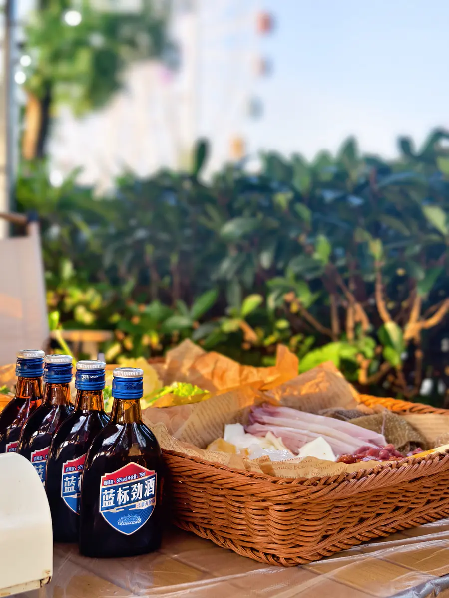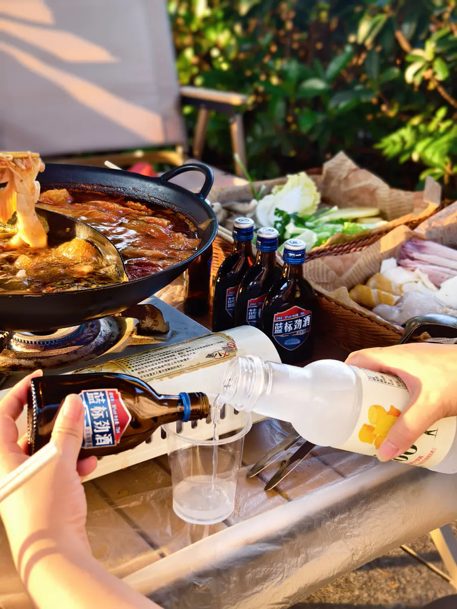 2️⃣ 倒入蓝标劲酒(比例1:3,微醺刚刚好)