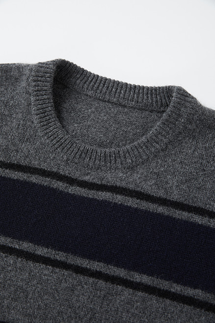山羊绒绵羊毛桑蚕丝混纺软糯条纹套头毛衫