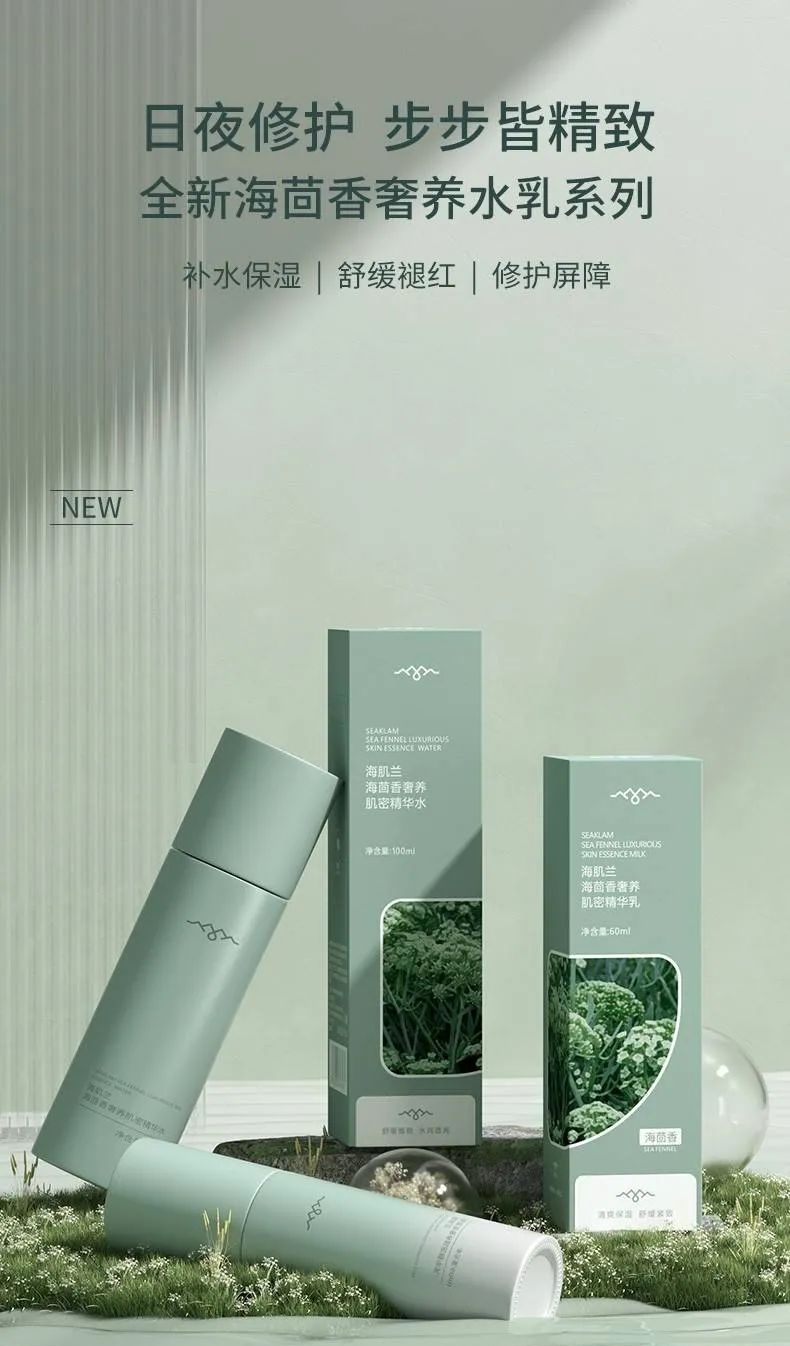 而海肌兰海茴香奢养肌密精华水乳,同样添加来自法国布列塔尼海岸的海茴香提取物,可以深层修复肌肤屏障。