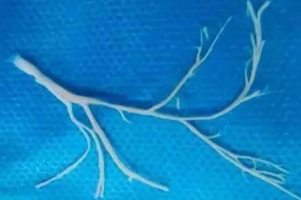 没错,你看到的这个“白树枝”,是从一个孩子的肺里取出来的。