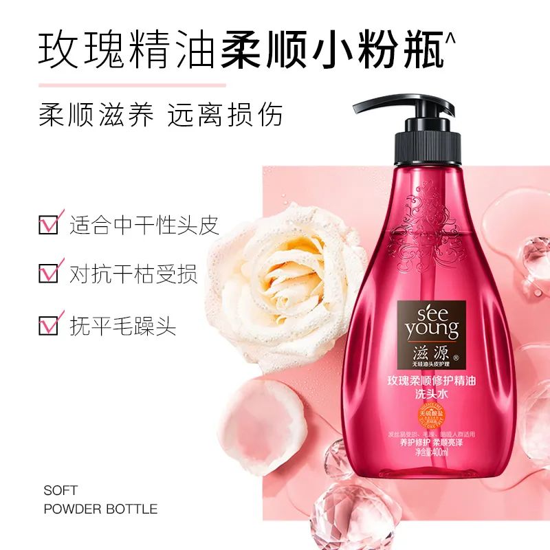 特意在玫瑰柔顺修护精油洗头水里,使用了独家GP-1毛鳞片修复技术,提高受损头发的抗拉力。