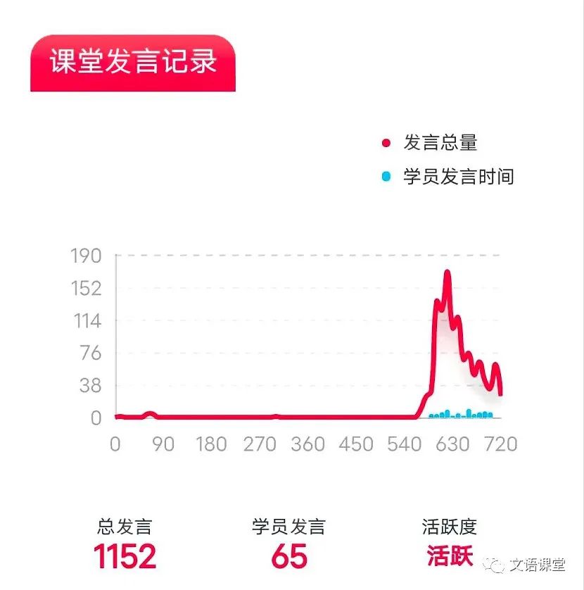 该功能处于国内领先水平:课程结束后,学员本节课在聊天室内所有的发言均在报告中生成,全面展现本节课的学习参与度!
