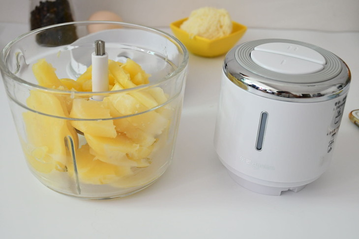 2、用无线料理机把蒸熟的土豆加入适量的盐搅拌成泥状。
