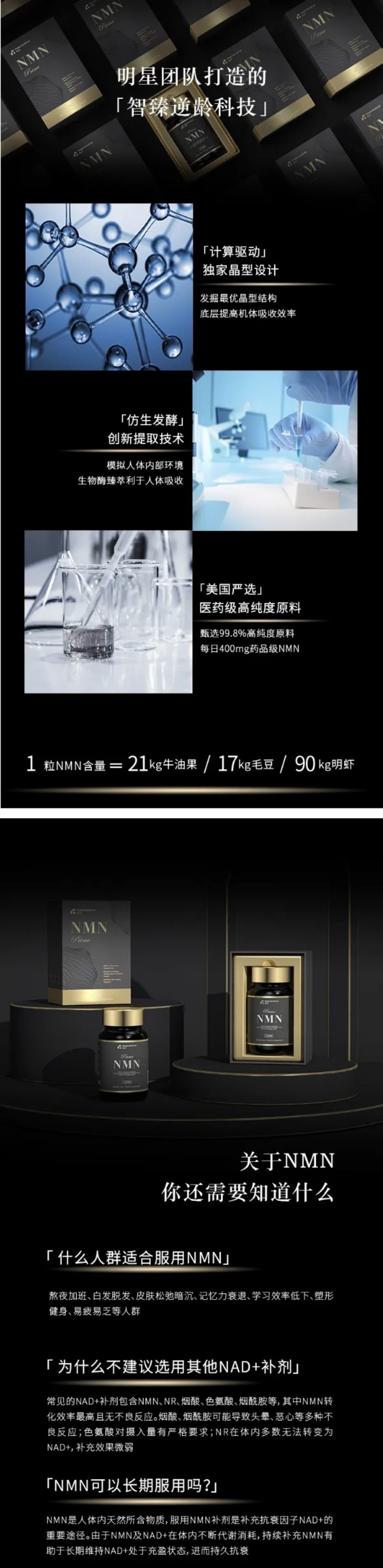 两款产品,一款是NMN(黑瓶),成分是纯NMN;